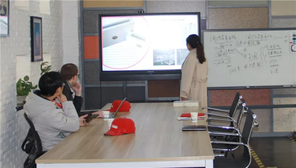 參觀考察過程中,朱經理為Kaj先生詳細講解了寶潤達聚氨酯復合板的性能特點和生產工藝等,并針對移動式酒店項目提出了初步的規劃和建議,得到了Kaj先生的認可。隨后Kaj先生與寶潤達高級工程師焦工進行了關于聚氨酯復合板運用到移動式酒店項目的技術溝通。